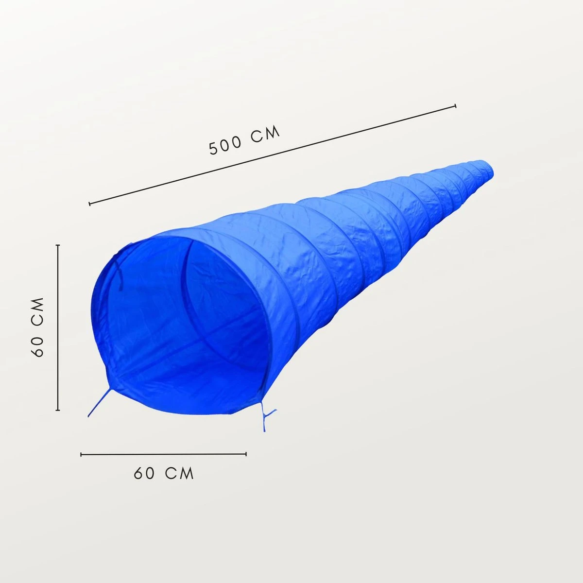 Verkrijgbaar in maat M, L of XL (maat M heeft een tunnellengte van 160 cm en maat L heeft een tunnellengte van 300 cm). Aangeraden wordt om maat L of XL te bestellen voor honden met een gevorderd niveau op agility training. De tunnels van 300 cm en 500 cm kunnen namelijk in een hoek van 90 graden worden geplaatst, waardoor de hond het uiteinde van de tunnel nog niet meteen kan zien en daardoor meer uitdaging krijgt.