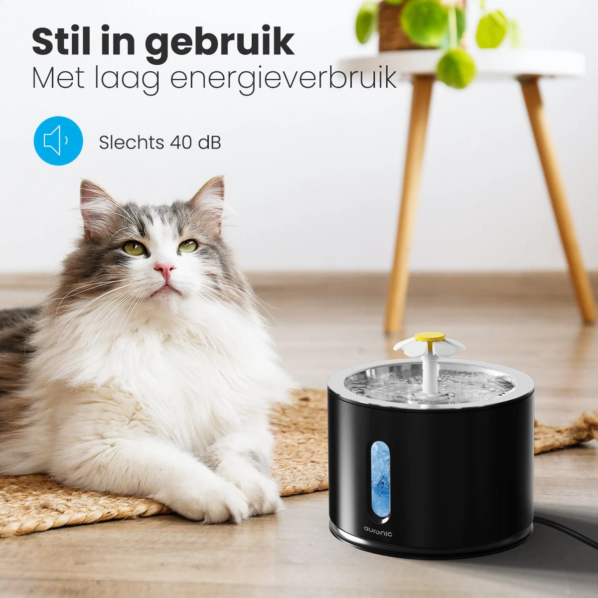 Drinken is saai, niet alleen voor de mens, maar ook voor jouw huisdier. Hierdoor kan jouw kat te weinig vocht binnen krijgen. Drinkproblemen komen bij katten helaas erg vaak voor en hier zijn verschillende aanleidingen voor. Andere voeding, ouderdom en gezondheidsproblemen zijn de meest voorkomende oorzaken. Gelukkig is deze betaalbare kattenfontein van Auronic dé oplossing om drinken weer leuk te maken. Katten houden van spelen en zien deze zwarte kattenfontein als een echt kattenspeeltje. Hierdoor drinkt je kat weer voldoende water en hoef je je geen zorgen te maken over de gezondheid.