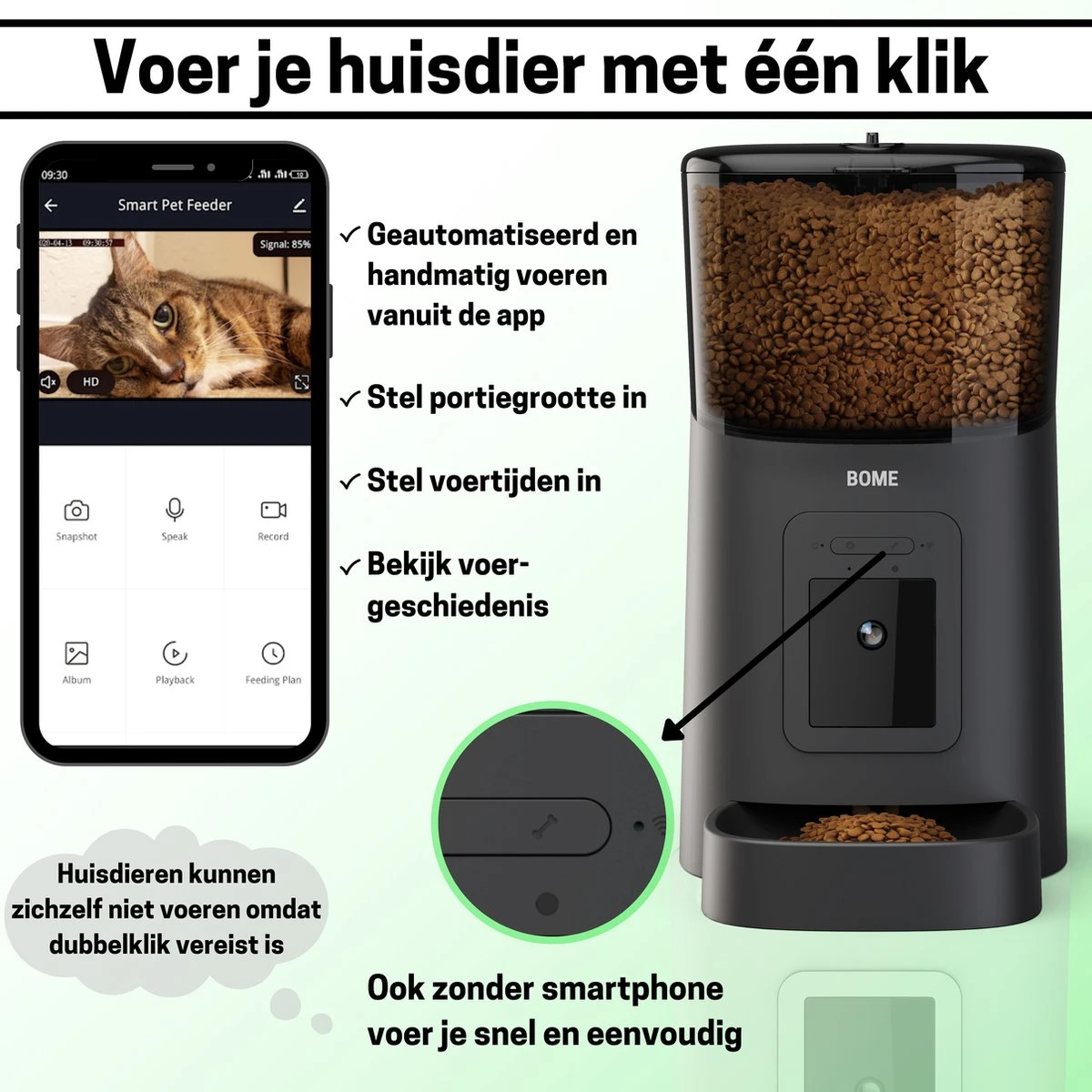 Kom je niet altijd op tijd thuis om je hond of kat eten te geven? Wil je je minder zorgen maken over je huisdier, maar er wel heel goed voor zorgen? De voerautomaten van BOME bieden hiervoor een ideale oplossing. De automatische voerbak zorgt ervoor dat je beestje op tijd eten krijgt en met de verstelbare camera kan er ook nog eens gekeken worden of het eten wordt opgegeten. Wie wil dat nu niet?