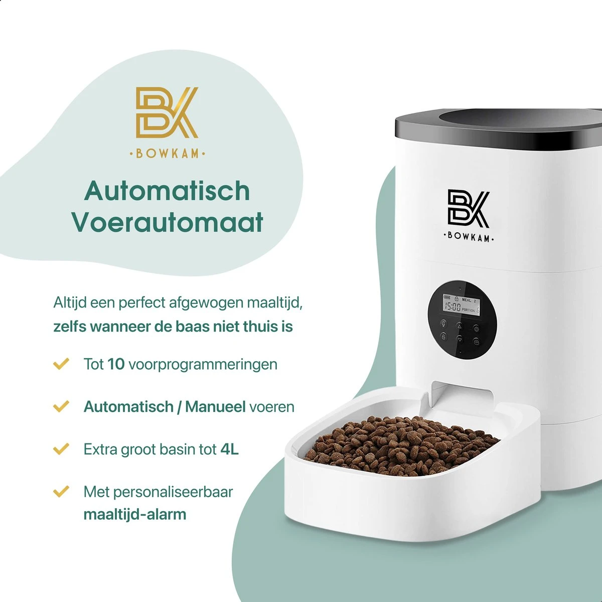 Heeft u het ook gehad om elke dag na te moeten denken wanneer u eten moet gaan geven aan uw kat en/of hond? De luxe automatische voerbak van Bowkam is de oplossing hiervoor! In deze voerautomaat kunnen op 4 verschillende momenten gedurende de dag eetmomenten ingesteld worden. Uw huisdieren zullen volop genieten van op tijd & gevarieerd eten. Door te kiezen voor Bowkam, kiest u voor een voordelig, kwalitatief en duurzaam product. Daarnaast, kunt u ons altijd bereiken en staan wij altijd voor u klaar!