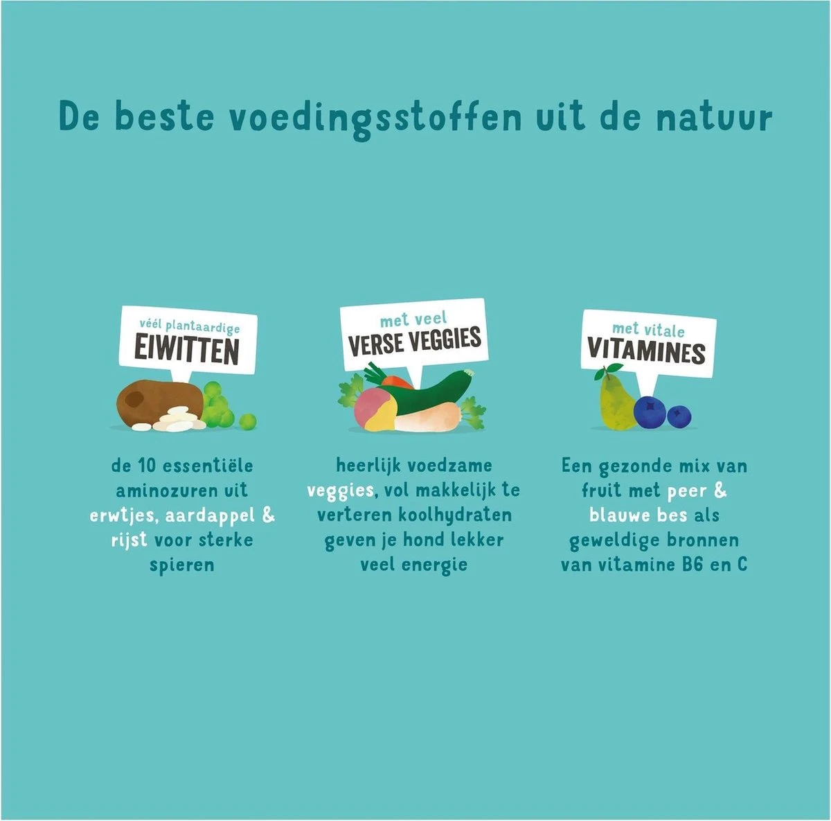 Dit heerlijke, plantaardige recept met wortel en courgette geeft je hond alles wat hij of zij nodig heeft. Rijk aan perfect gebalanceerde eiwitten bevat het alle 10 essentiële aminozuren, afkomstig uit aardappelen, rijst en erwtjes. Dit recept is hypoallergeen en zit boordevol verse groenten en een voedzame mix van fruit, kruiden en peulvruchten.