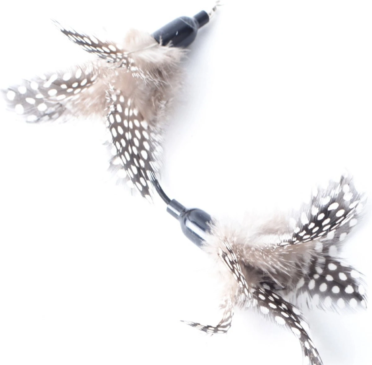 Deze vernieuwde speelhengel van Fuzly is speciaal ontworpen voor mensen die het uiterste uit het natuurlijke jachtinstinct van hun kat willen halen. Door de veer-constructie lijkt het net alsof er een echte vogel door uw huis vliegt.