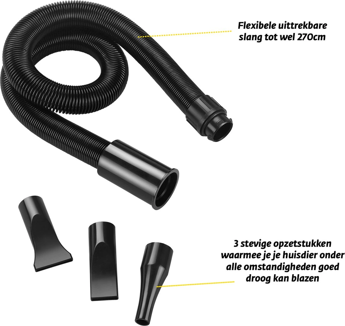- Flexibele uittrekbare blaasslang tot een lengte van 270cm.