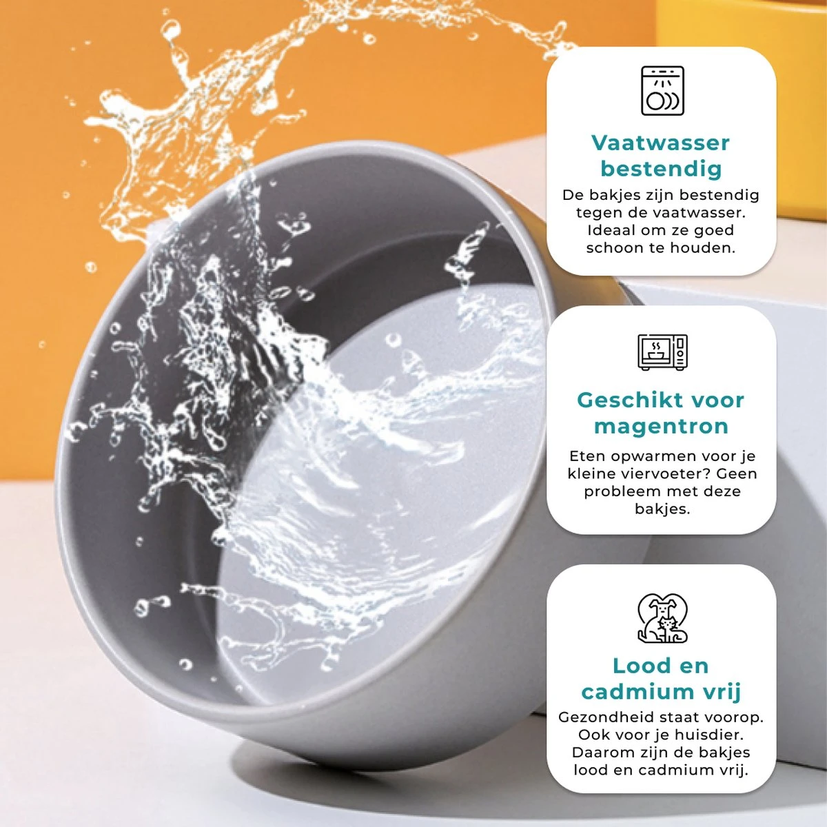 Deze voerbakken staan bovenal goed in de keuken of welke kamer dan ook. Ze zijn beschikbaar in drie verschillende kleuren. De voerbakken staan dicht bij elkaar, om het gebruiksgemak voor je huisdier te vergroten.