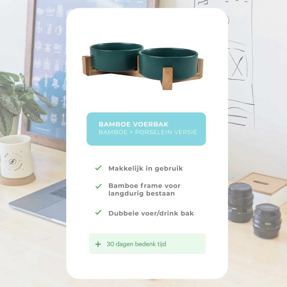 Homefy Voerbak – Bamboe Standaard – 2 x 400 ML Keramiek Groen