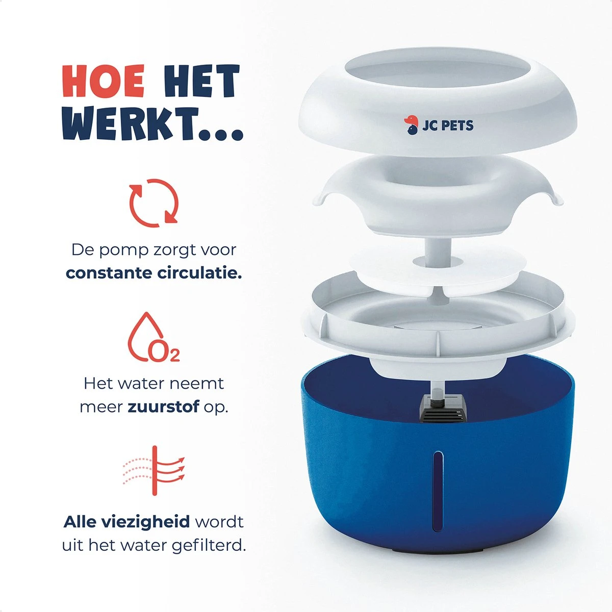 Drinkt je huisdier niet genoeg water? Met de JC Pets premium drinkfontein hoef jij je geen zorgen meer te maken. Deze fluisterstille waterfontein houdt het drinkwater schoon, stimuleert het drinken en biedt jouw kat of hond de allerbeste verzorging.