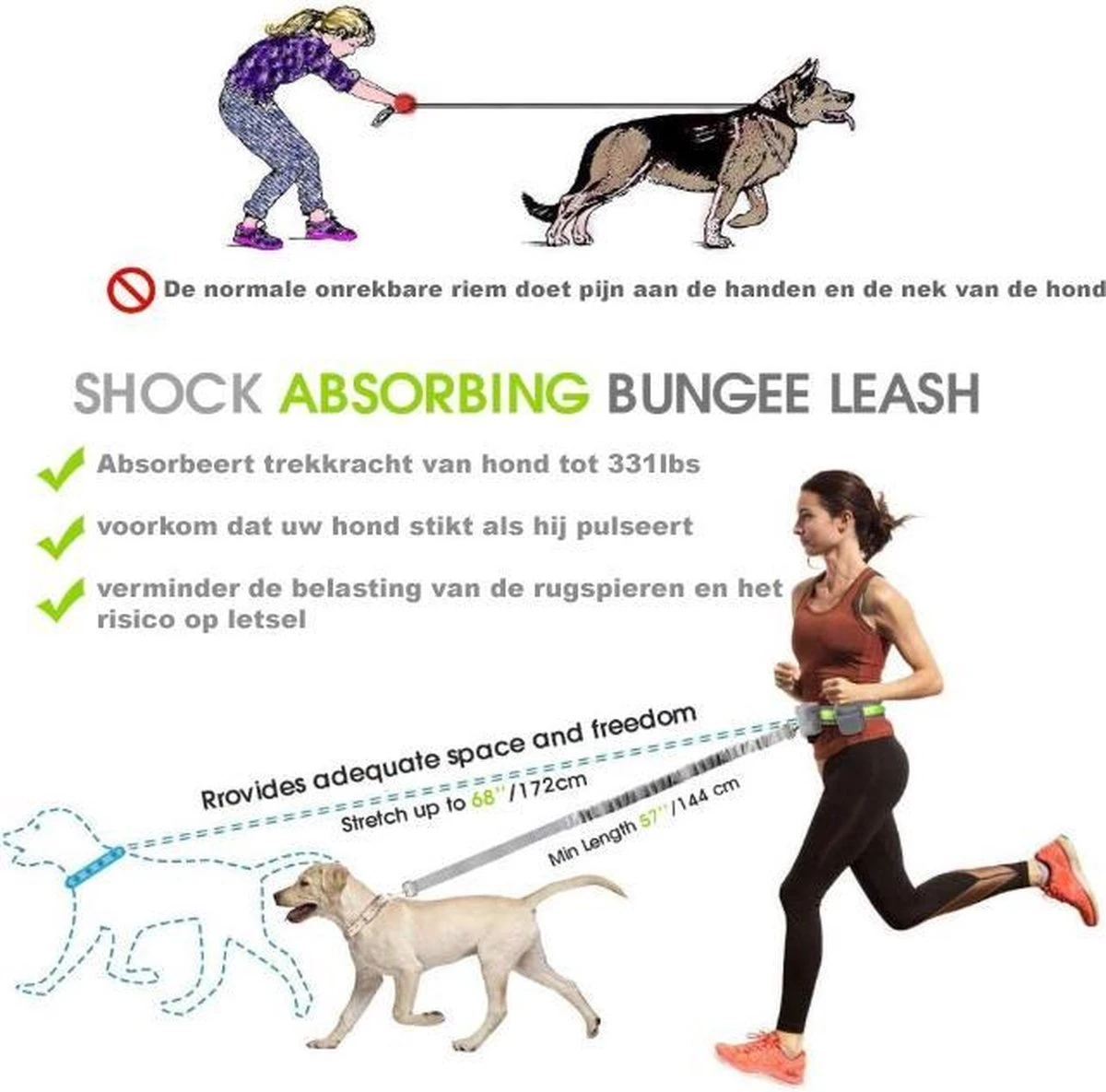 Bij dit super handige product is gekozen voor een schokbestendige, elastische looplijn. Geen onverwachtse schokken tijdens het lopen zoals bij normale looplijnen. Je hond heeft zo veel bewegingsvrijheid en jij kan je rustig focussen op het hardlopen. Win win situatie dus!