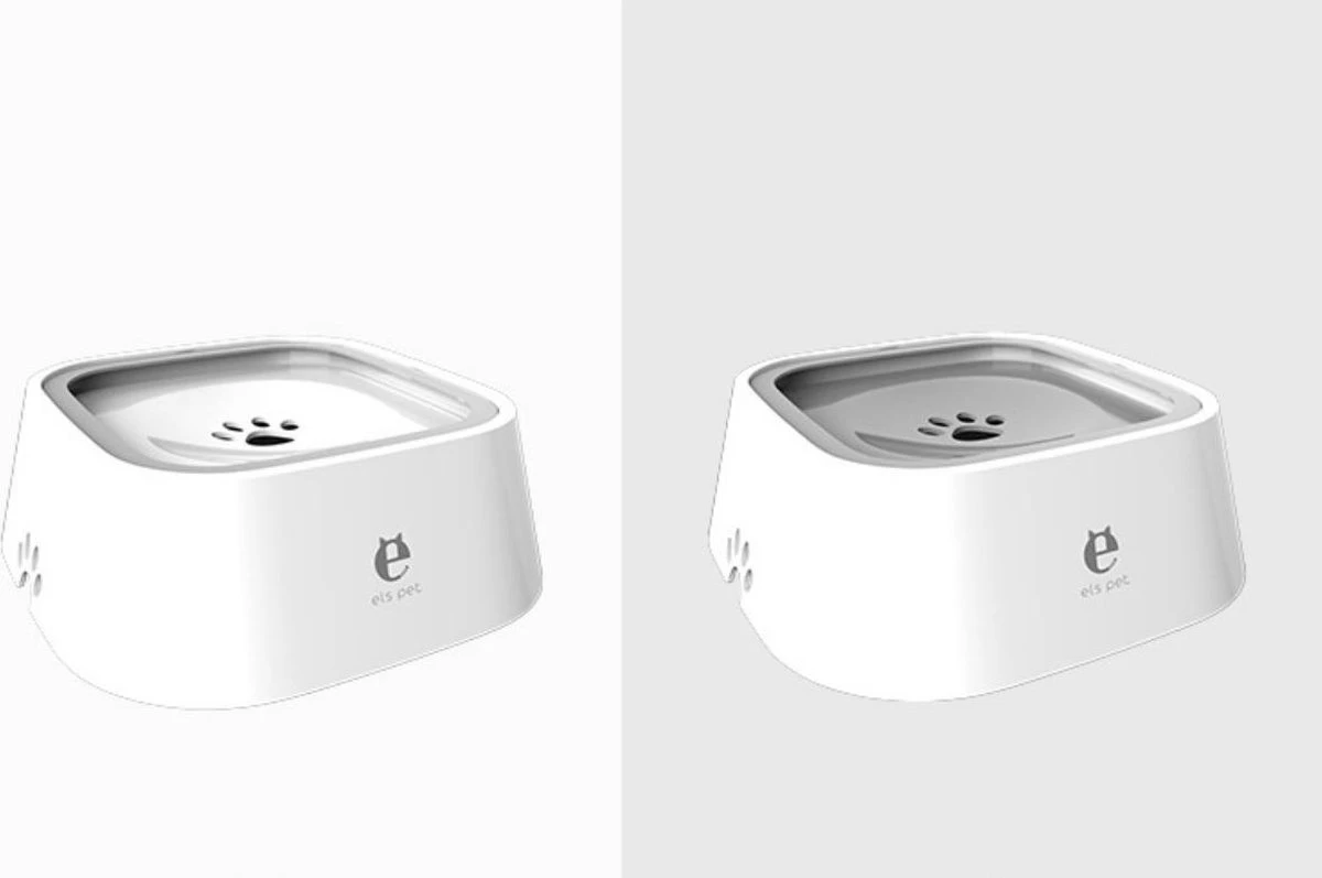 De speciale drinkbak heeft een drijvende schotel met sleuven waar maar een klein laagje water op ligt. Zo kan uw hond maar kleine beetje tegelijk drinken en spettert het water niet over de rand.