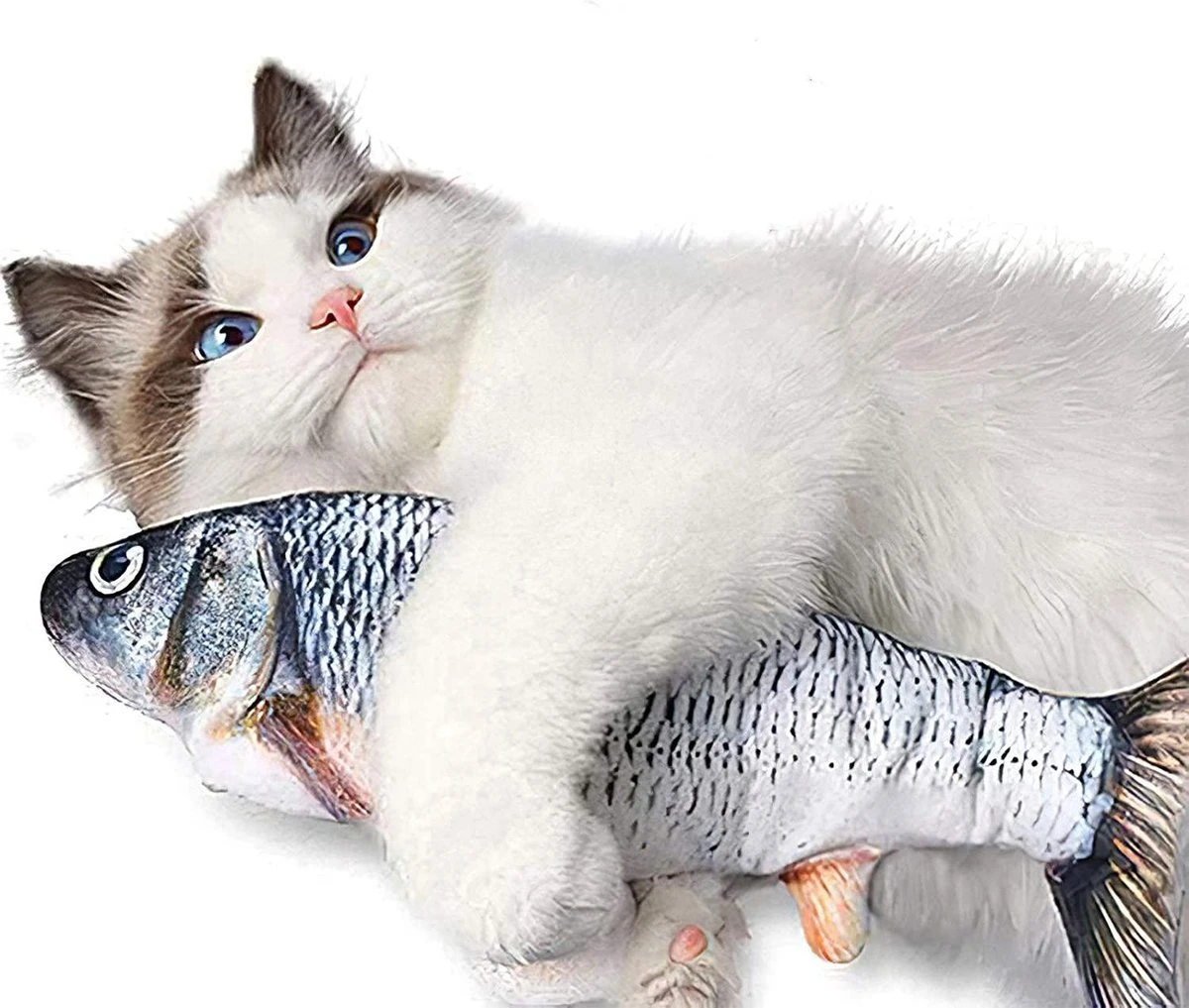 Leg de vis bij uw kat, zodra de kat de vis aanraakt begint deze levensecht te spartelen.