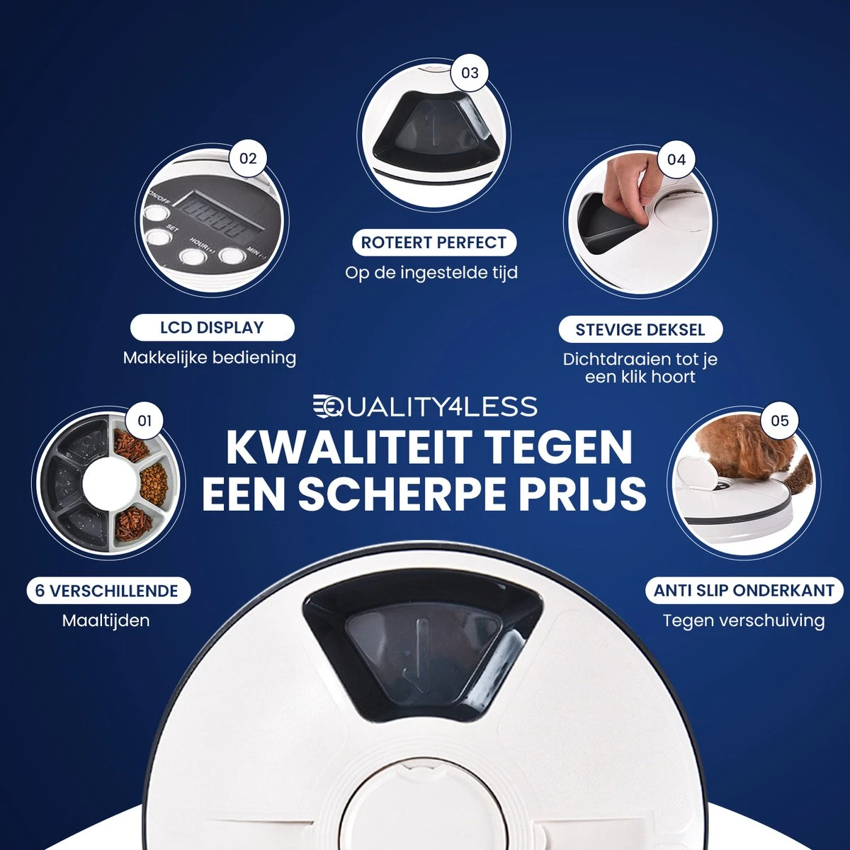Ben je niet altijd in staat om jouw huisdier eten te geven? De Quality4Less™ Voerbak doet het automatisch voor je!