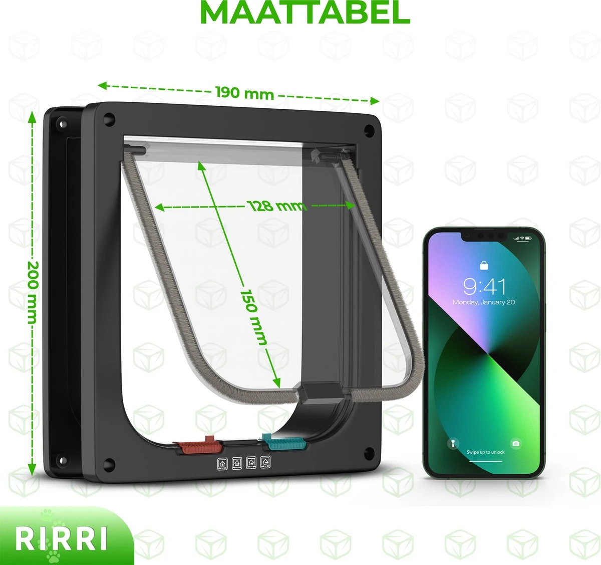 ▶ 4 vergrendeling standen- Houdt je je kat s’avonds liever binnen? Dat kan nu nog gemakkelijker dankzij de 4 vergrendel standen. Zo is helemaal open, alleen naar binnen of alleen naar buiten allemaal mogelijk. Je bepaalt het allemaal zelf!