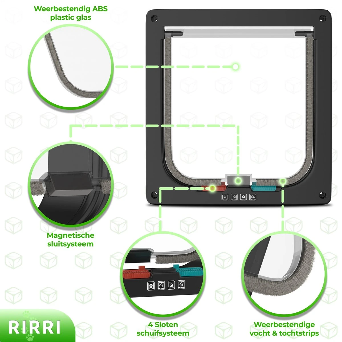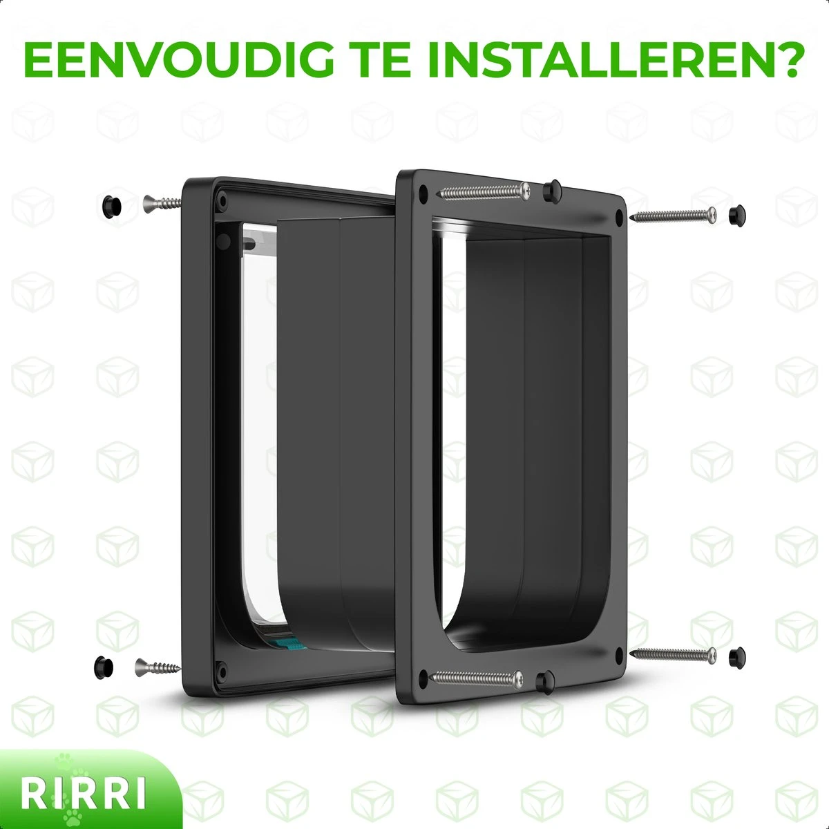 ▶ Inhoud verpakking: 1x kattenluik 1x handleiding 4x plakstrip 8x schroeven 9x afdekdopjes