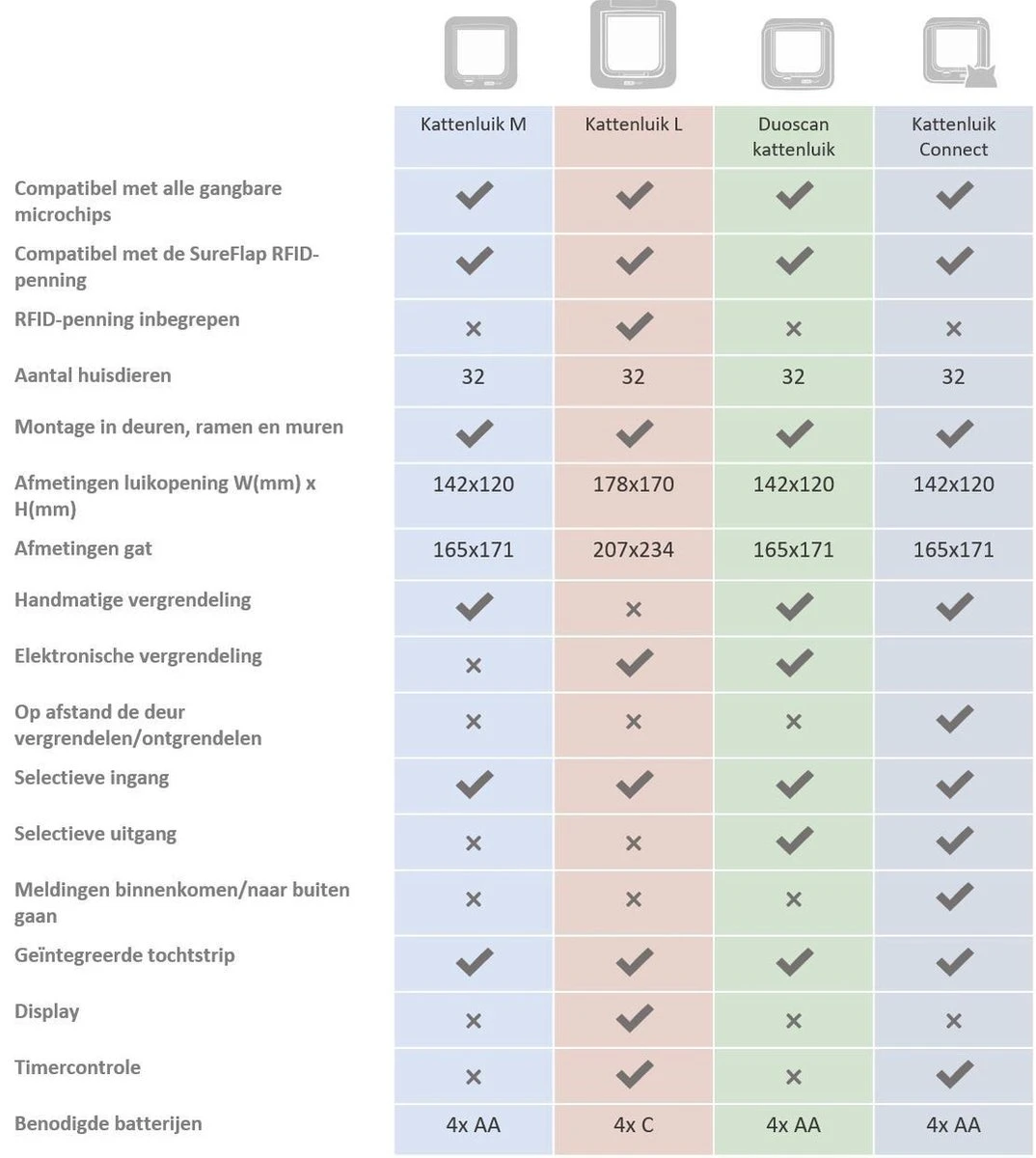 Kattenluik L heeft als extra functionaliteiten de mogelijkheid om tijdsranges in te stellen daarbij is de doorgang wat groter.