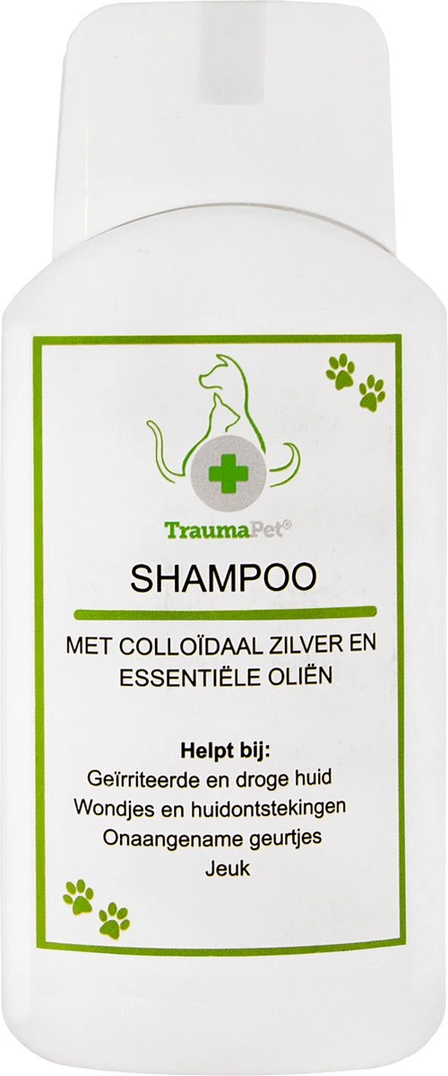 TraumaPet Shampoo is ideaal voor honden en katten met huid- en vachtproblemen. Het draagt bij aan het verzachten en verzorgen van de rode, ruwe huid die vaak voorkomt bij huidproblemen. Daarnaast ondersteunt de shampoo het herstel van de huid door het toegevoegde colloïdaal zilver. Wist je dat colloïdaal zilver van nature een ontstekingsremmende en antibacteriële werking heeft?
