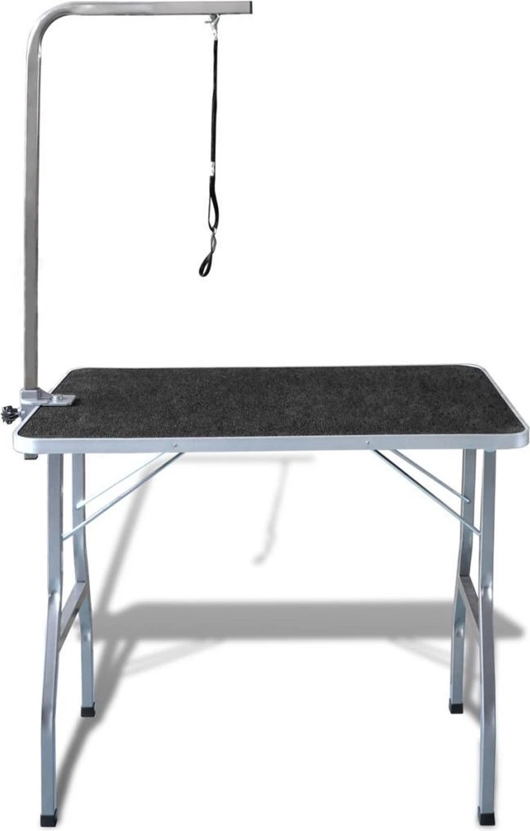 De verzorgingstafel is perfect voor trimmers die thuis of elders, bijvoorbeeld bij hondenshows, dieren willen verzorgen. De trimtafel beschikt over een anti-slip tafelblad en een gepoedercoat ijzeren frame met een verstelbare trimarm en aanlijnlus. Deze professionele trimtafel is veelzijdig en maakt iedere trimsituatie comfortabeler. Het tafelblad van de hondentafel is voorzien van een anti-slip laag, met oog op de veiligheid van je huisdier terwijl deze op de tafel staat. De aanlijnoptie is in hoogte verstelbaar en eenvoudig af te koppelen na gebruik, de trimtafel is gemakkelijk op te bergen dankzij het inklapbare onderstel. Bovendien neemt de trimtafel weinig ruimte in beslag wanneer u deze na gebruik weer opbergt. De tafel is met zijn ergonomische ontwerp in zijn geheel in hoogte verstelbaar. Levering bevat 1 x trimtafel, 1 x aanklembare aanlijnarm en 1 x aanlijnlus.