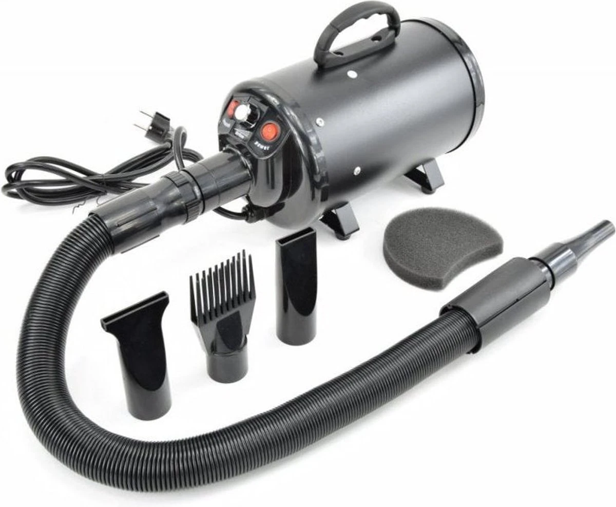 Met deze krachtige professionele waterblazer, inclusief geluidsdemper en 4 opzetstukken is jouw hond in een handomdraai weer helemaal droog en schoon!